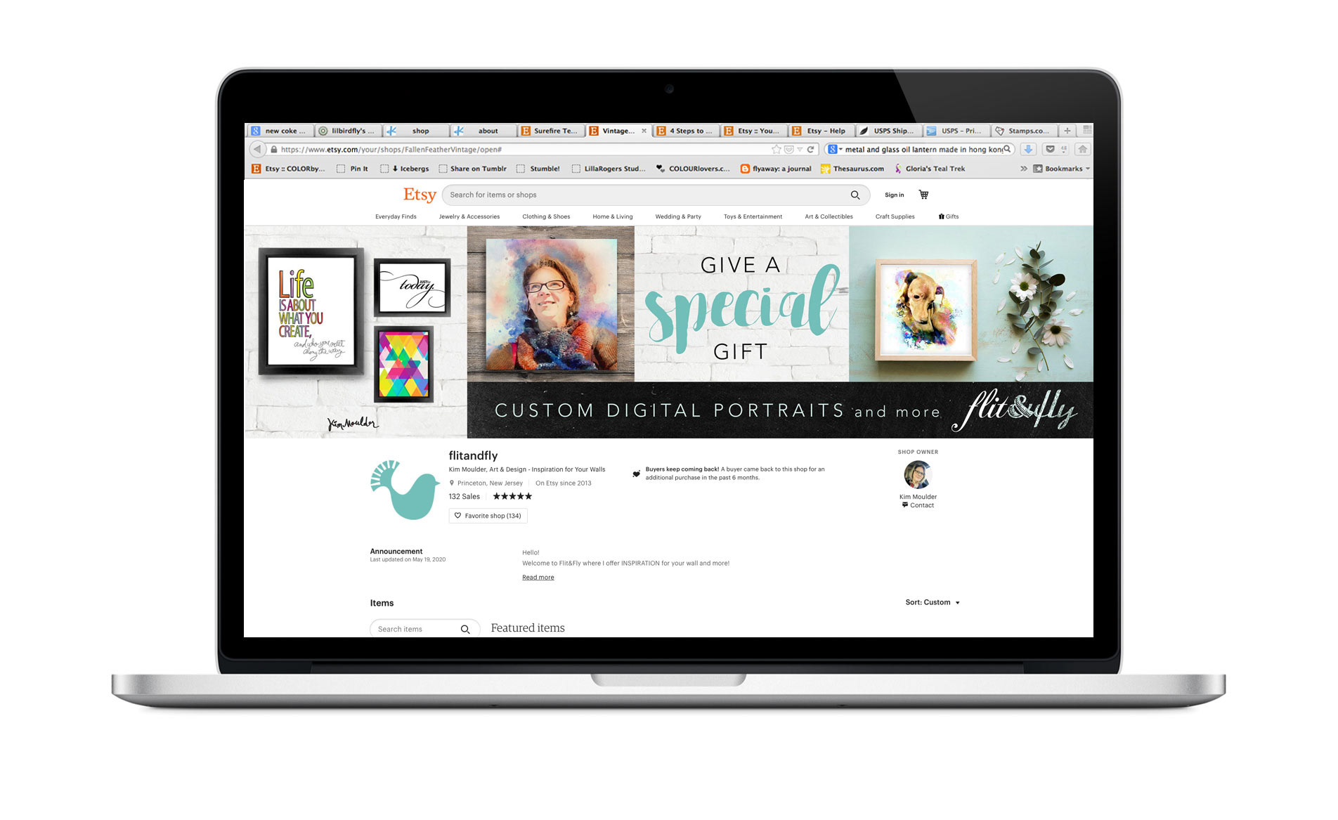 I designed a logo and several shop banners for my online Etsy shop. Included below are packing labels and listing images.