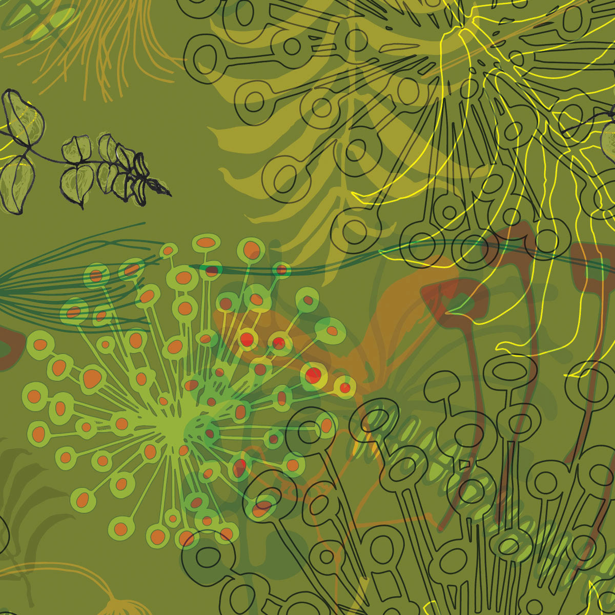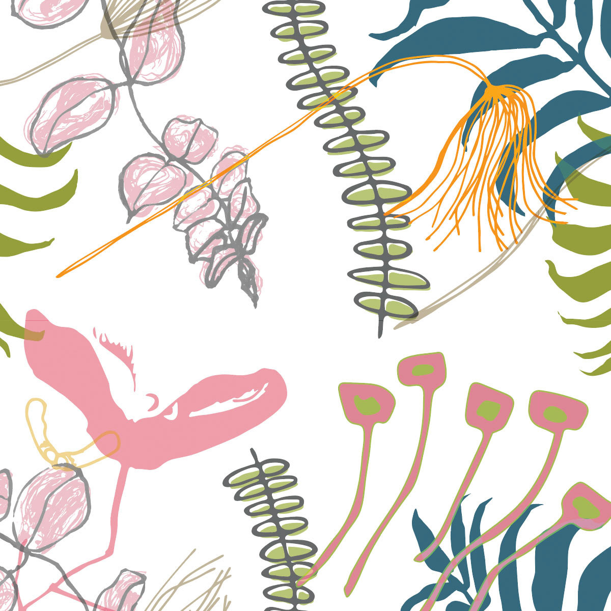 This group of patterns started with drawings of seeds, leaves and ferns. In the end, it became a collection of patterns that exude a feel of tropical paradise.